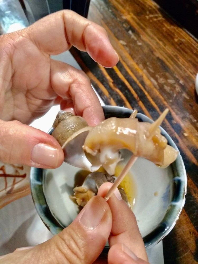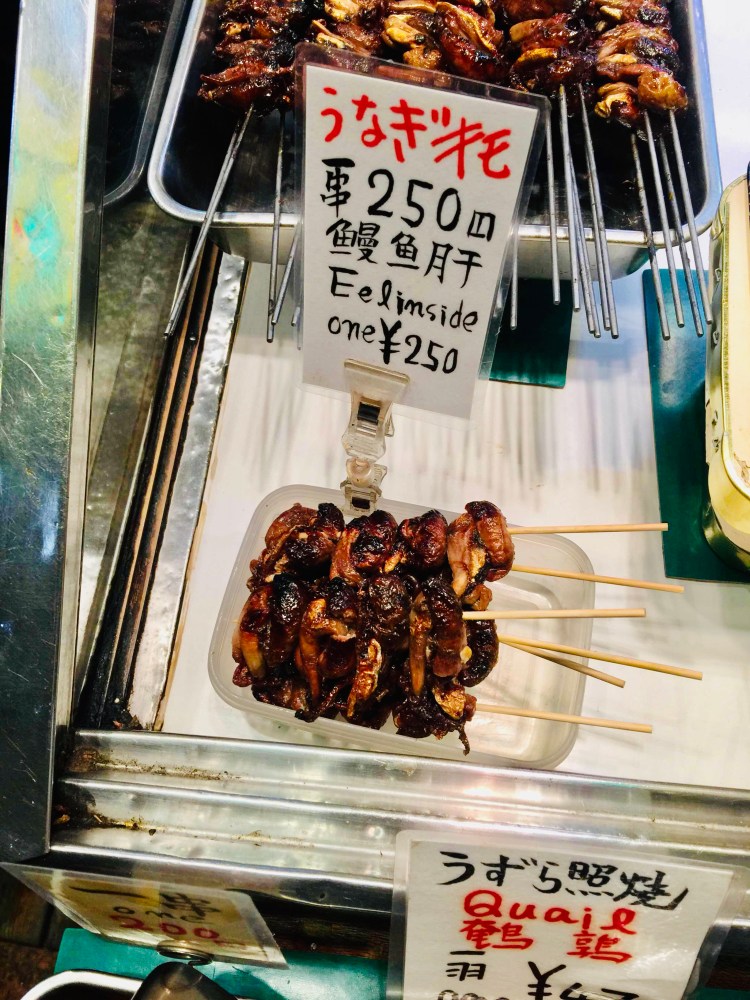 Foto 4 – Yakitori, equivalente ao nosso churrasquinho, só que lá fazem de tudo, desde pele de frango até bochecha de porco.