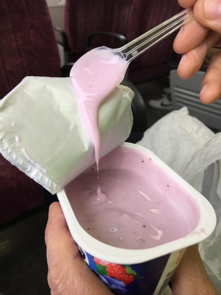 O iogurte não gruda na tampa. Fim da lambida. Uma pena 🥺
