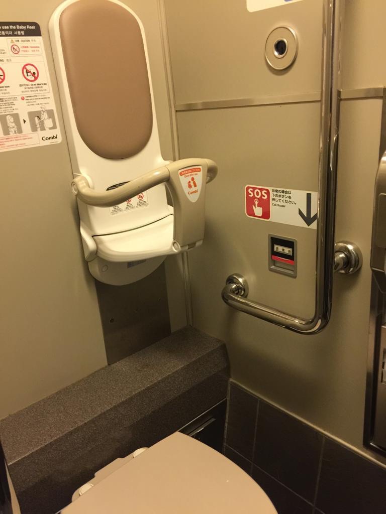 Cadeirinha para a mamãe deixar seu bebê enquanto usa a privada