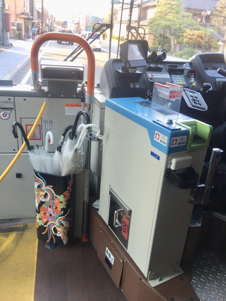 Máquina de troco nos ônibus. Guardas chuvas para serem emprestados.