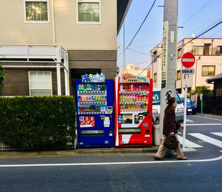 Maquinas de venda de produtos de conveniência estão a cada esquina. Algumas vendem até absorventes femininos.