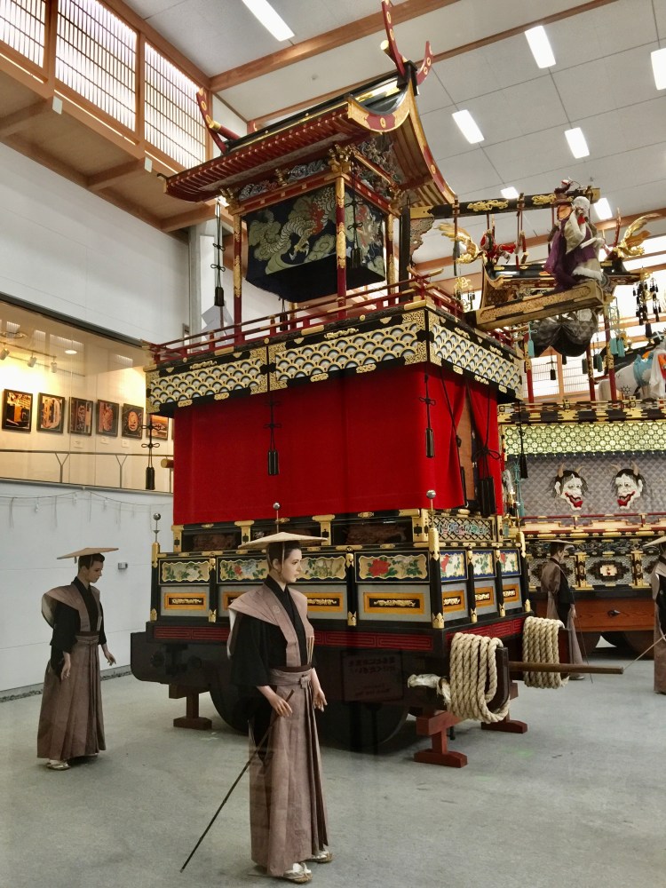 É famosa pelo festival bianual que celebra, há 4 séculos, a chegada da primavera com desfiles de carros alegóricos imensos. Eles ficam guardados em casas de pé direito altíssimo. Perdemos o festival mas o Museu Matsuri-no-Mori nos deu uma ótima impressão do que é. Lembra muito nosso Carnaval. Deve ser esta a única época do ano que Takayama sai da calmaria.