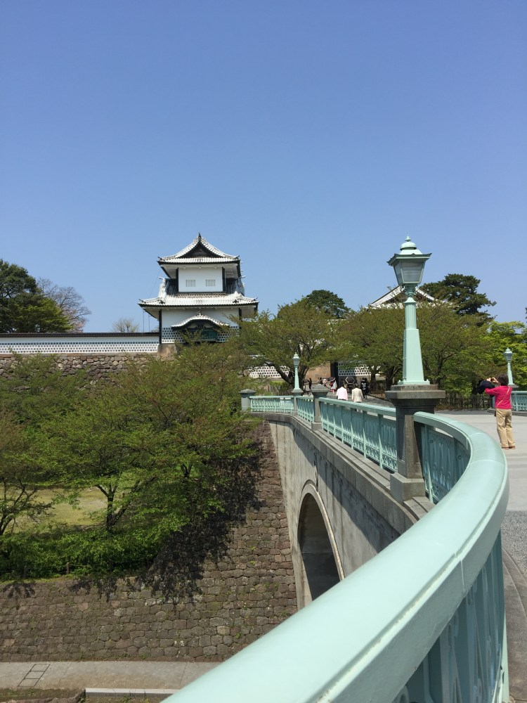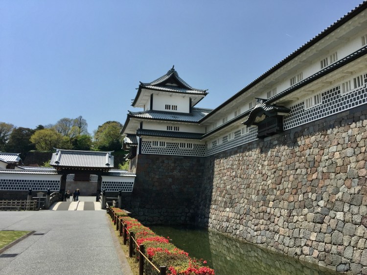 O Castelo de Kanazawa, conhecido como o “museu dos muros de pedra”, foi construído em 1583, usado como residência de uma rica família, até 1869. Fica num parque, amplo como costuma ser os parques japoneses, tem 3 portões de acesso, sendo o mais usado o Ishikawa-mon, talvez por ser o que dá saída mais próxima para o Jardim Kenrokuen.