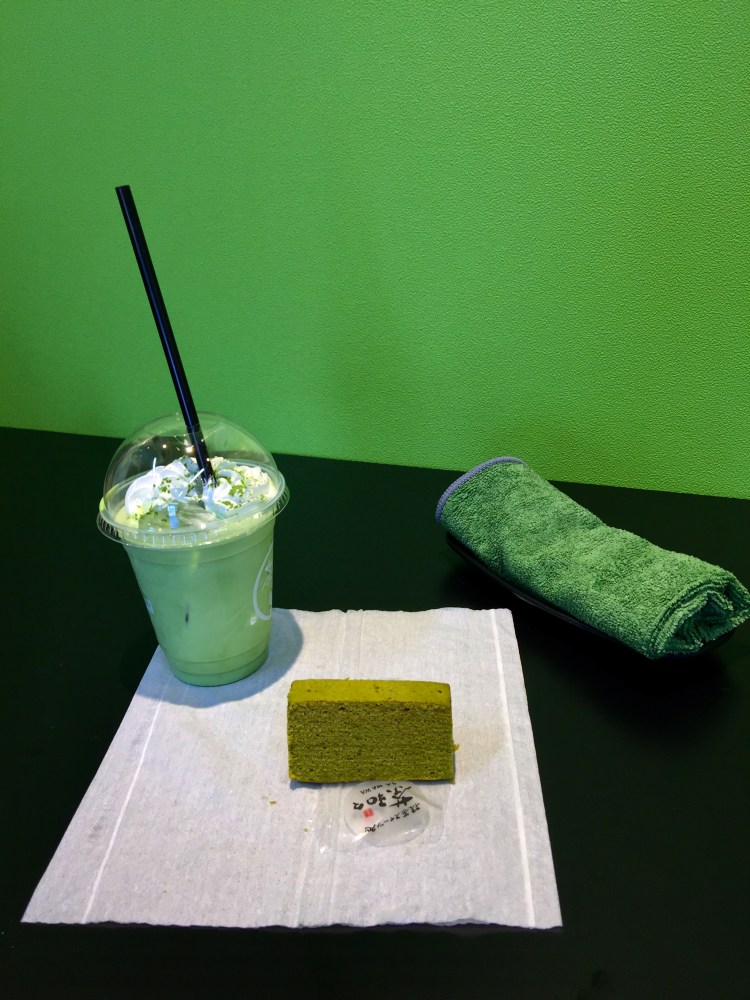 Entramos, sem planejar, no que chamei a “rota dos doces de matcha”. Doces à base de matcha, um parecido com bolo de rolo; chá e o adorado matcha Latte. Experimentei o sorvete coberto com folha de ouro. Em Kanazawa, a folha de ouro é uma das grandes atrações. Tudo que se possa imaginar de uso para as películas douradas, tem por lá.