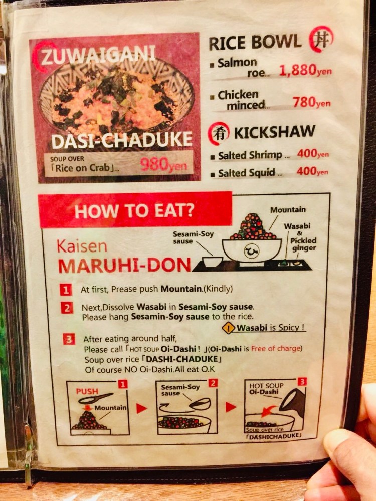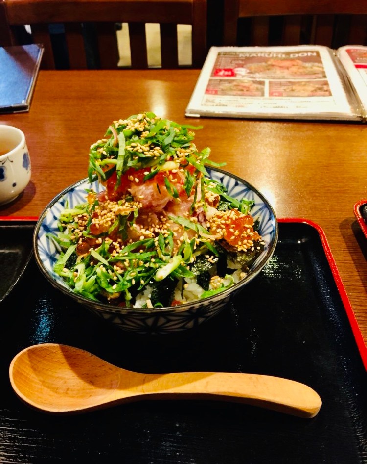 Experimentei um prato simples mas com um ritual que o restaurante faz ser cumprido, na ordem e maneira como você vai comendo. Há um passo a passo a seguir. É, basicamente, peixe sobre arroz. Começa-se adicionando os temperos ( gergelim, salsa, molho shoyo, wasabi), depois de se comer o peixe, acrescenta-se um caldo sobre o arroz restante e come-se de colher o resultado que fica parecido com uma canja.