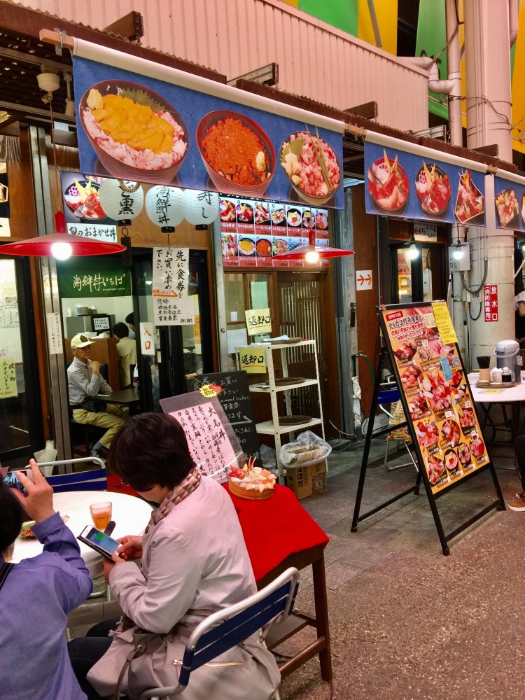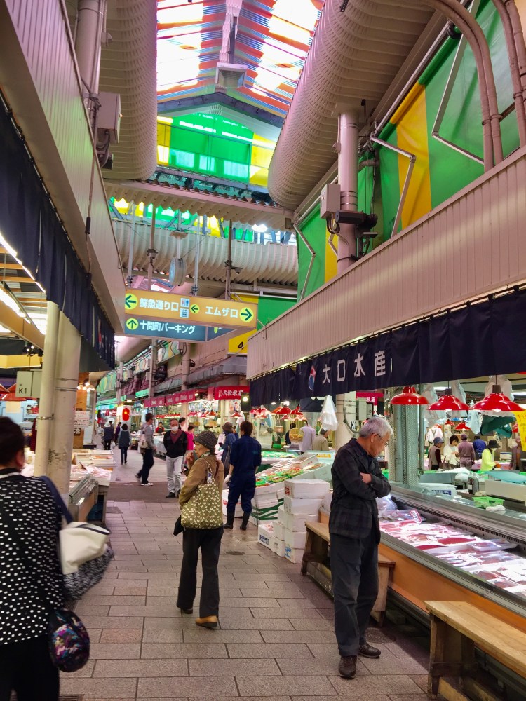 Disputa com o Tsukiji, de Tokyo, o título de lugar mais interessante para se ver barracas com oferta de incontáveis de variados tipos de peixes e frutos do mar. Vou dispensar as fotos porque a surpresa que o Tsukiji me causou estragou a daqui.