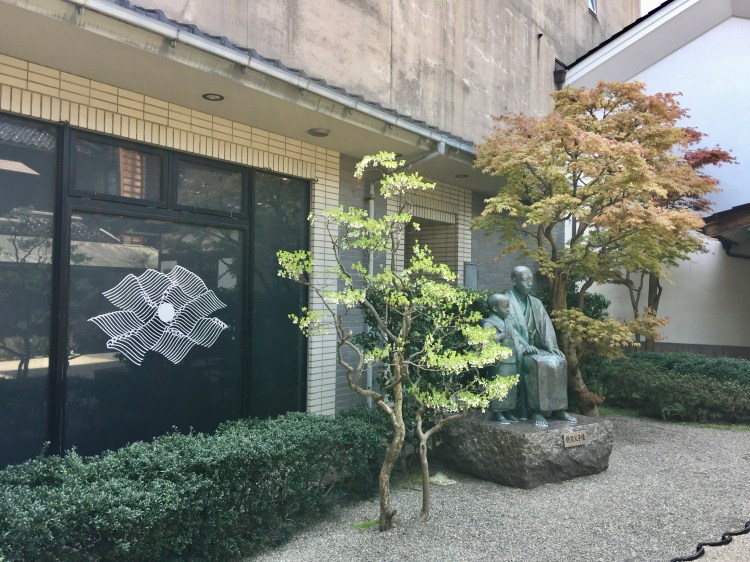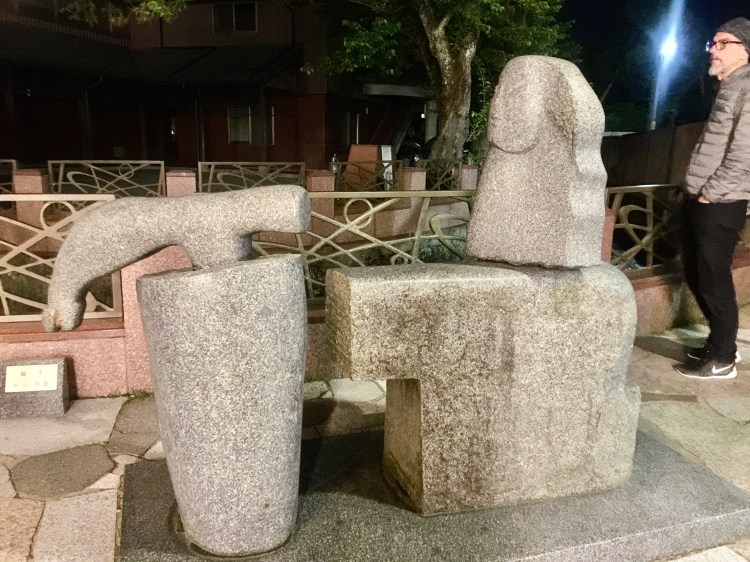O pórtico de Tsuzumi impressiona. Dependendo de onde a gente se posicione, a vista é completamente modernosa ou com jeito de antiga. Ver a estrutura de vidro através dele é sensacional. E a cidade faz uma homenagem à chaleira, utensílio que ocupava lugar de destaque nas salas principais de uma casa japonesa. Vimos chaleiras em muitos lugares.