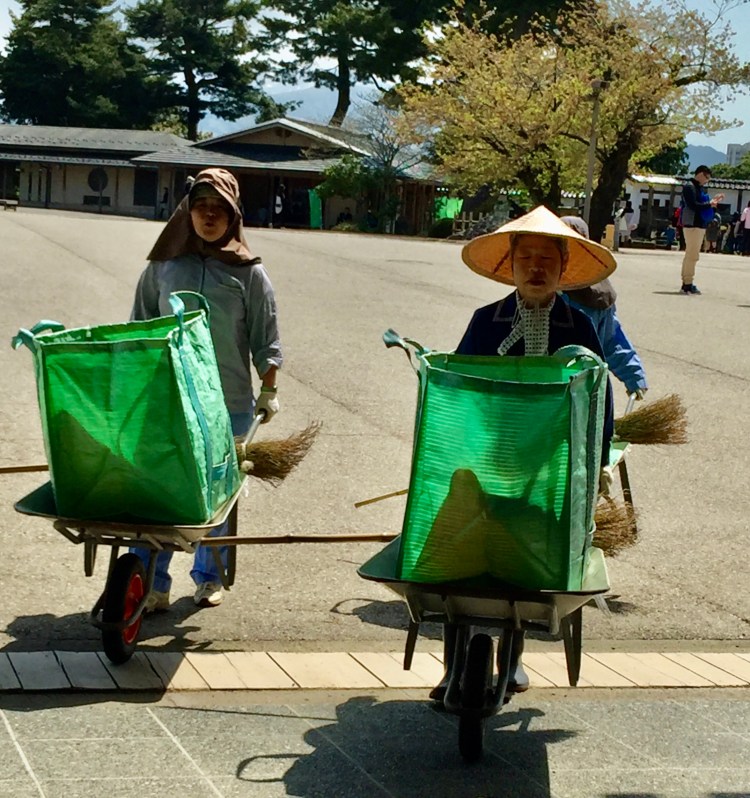 Impossível não notar os cestos usados pelo pessoal da limpeza do parque, para recolher folhas das árvores. Só folhas, não por ser proibido outra coisa mas por, simplesmente, não ter outro tipo de lixo. Regra geral, não há quem largue lixo, nos espaços públicos, no Japão. Não se vê lixeiras. As pessoas parecem levar seus lixos para casa. Na Zona Sul do Rio, até que os bairros são bem servidos de lixeira mas elas são ignoradas e algumas pessoas não tem cerimônia de jogar lixo nas ruas. Mais uma inveja: de pessoas que sabem se comportar com respeito por espaços coletivos.