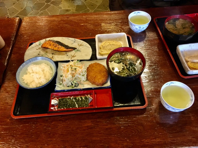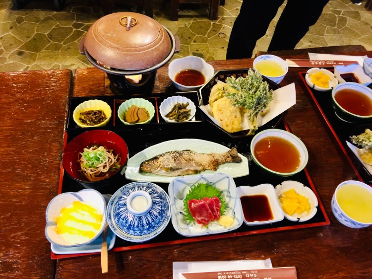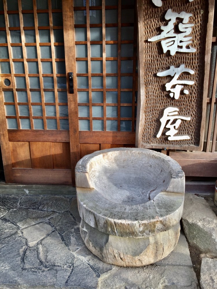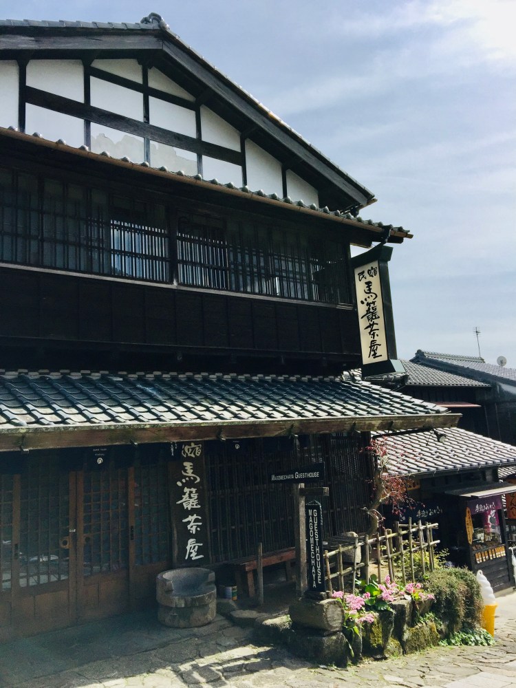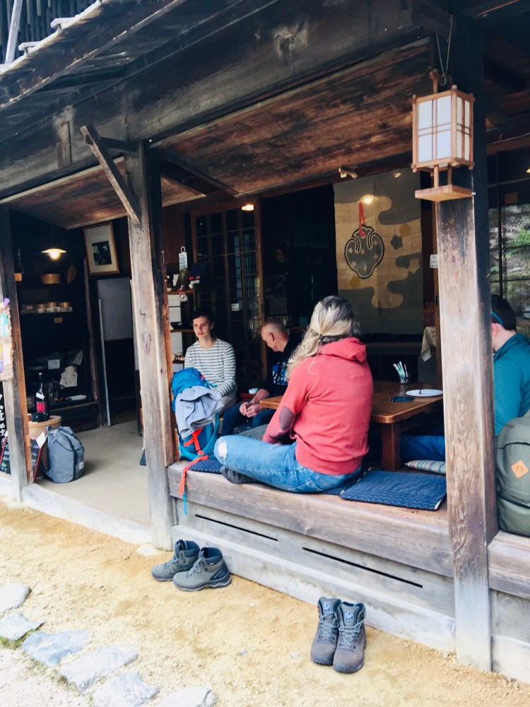 Fomos direto ao minshunku em que nos hospedamos por 2 noites. Ficamos no Magomechaya Minshuku. Eu nunca tinha estado num lugar desses antes e foi divertido ver o interior, o quarto com tatame e quase sem móveis, as áreas compartilhadas ( cozinha, banheiros, etc)). Tudo muito limpo e com atendimento super gentil.
