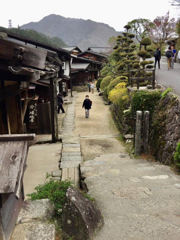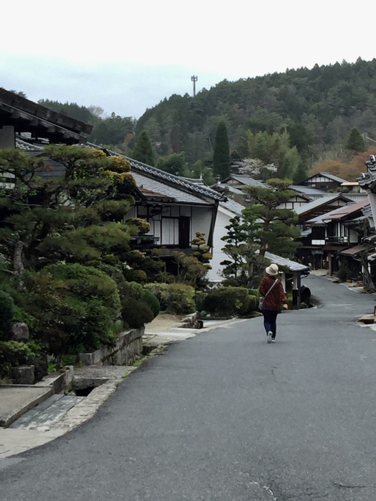 E, após 3 horas de caminhada ( claro que parando para ver a paisagem e as novidades), sem encontrar ursos pelo caminho, chegamos à pequena Tsumago, no vale do rio Kiso, vilarejo intocado que dá um pouco da ideia do que foi o passado feudal do Japão.