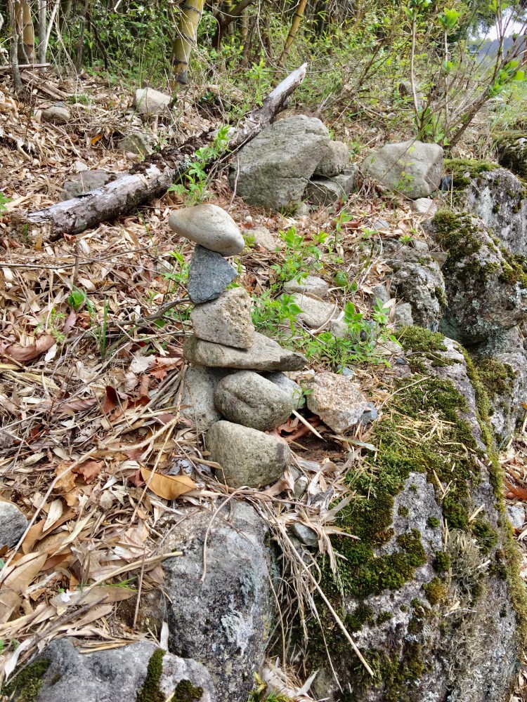 E, finalmente, a trilha para Tsumago. Pelo caminho, um sino para espantar os ursos, várias “esculturas” de pedras feitas pelos passantes bem de acordo com o respeito que o povo daqui tem pelas pedras, um pequeno templo e a exuberância da folhagem.