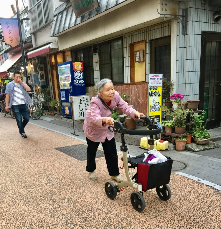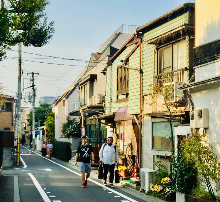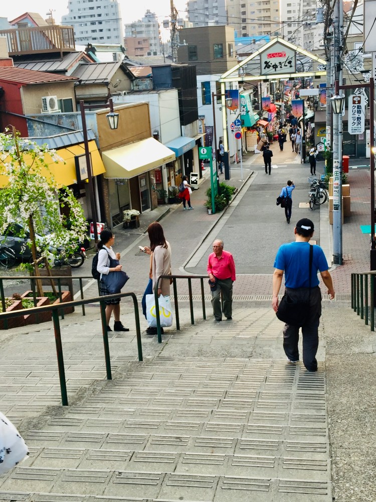 Saindo do Parque Ueno, fomos em busca de um bairro conhecido por ser um local atípico, em Tóquio. Sem arranha- céus, sem cartazes em neon, sem karaokê, sem jovens executivos nos seus uniformes calça preta-camisa branca-de-manga comprida. Uma área frequentada e habitada pela gente das artes, por quem busca um estilo de vida simples e sustentável, distante do vivido por quem tem muita grana. Estes valores geram uma atmosfera singular, cultura boêmia e a “shitamachi vibe”. Shitamachi se referia às partes da cidade onde moravam os trabalhadores, normalmente, eram as partes baixas e mais pobres. E a vibe é aquela do tempo da velha Toquio, antes do milagre econômico dos anos 70/80, do século 20.
