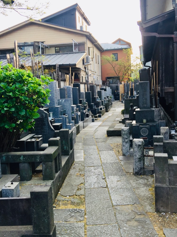 Na primeira etapa, já vimos ruas onde templos, casas e cemitérios dividem o espaço. A área é bem bonita, arborizada com cedros centenários e a estética budista, tão distinta da ocidental, não deixa que a gente faça ligação com os nossos cemitérios. A paisagem não nos remete à morte. Os túmulos são ornados com sotobas, estes grandes bastões de madeira ou pedra, com inscrições em caracteres sânscritos, com votos para facilitar a entrada do defunto no paraíso.