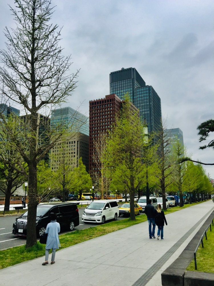 Em seguida, deixamos o parque em direção a Marunouchi, região onde ficam as sedes das mais importantes empresas do país, em particular, as do setor financeiro, instaladas em ruas de prédios monumentais contrastando com pequenas ruas, com ainda muitas cerejeiras floridas.